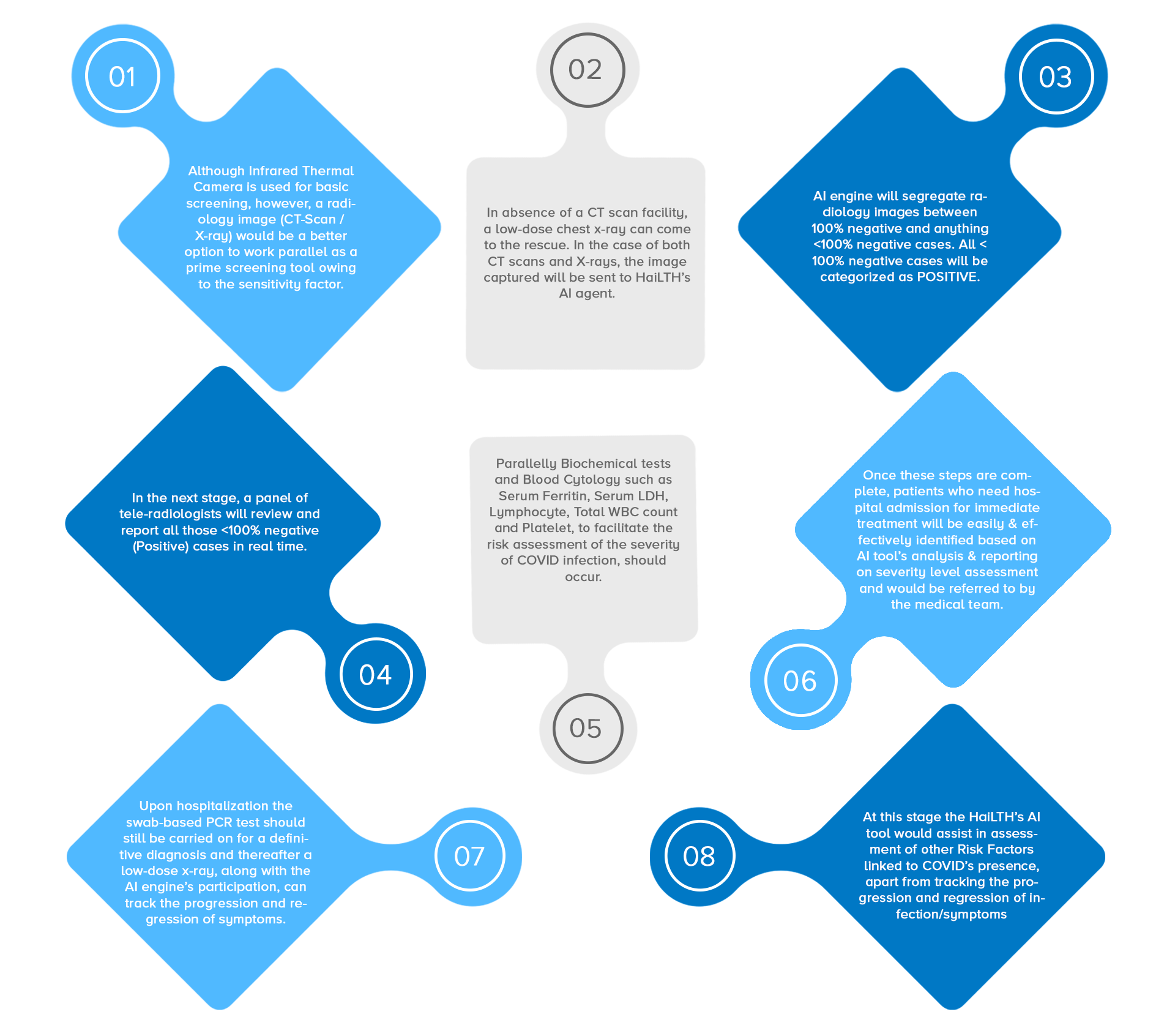 HaiLTH’s AI tool does not simply detect patients with pneumonia or those who are possible carriers of SARS-CoV-2 but also facilitates identifying those who are asymptomatic yet are developing pneumonia. Early detection and prevention of pneumonia is crucial to saving lives and reducing the burden on healthcare systems.